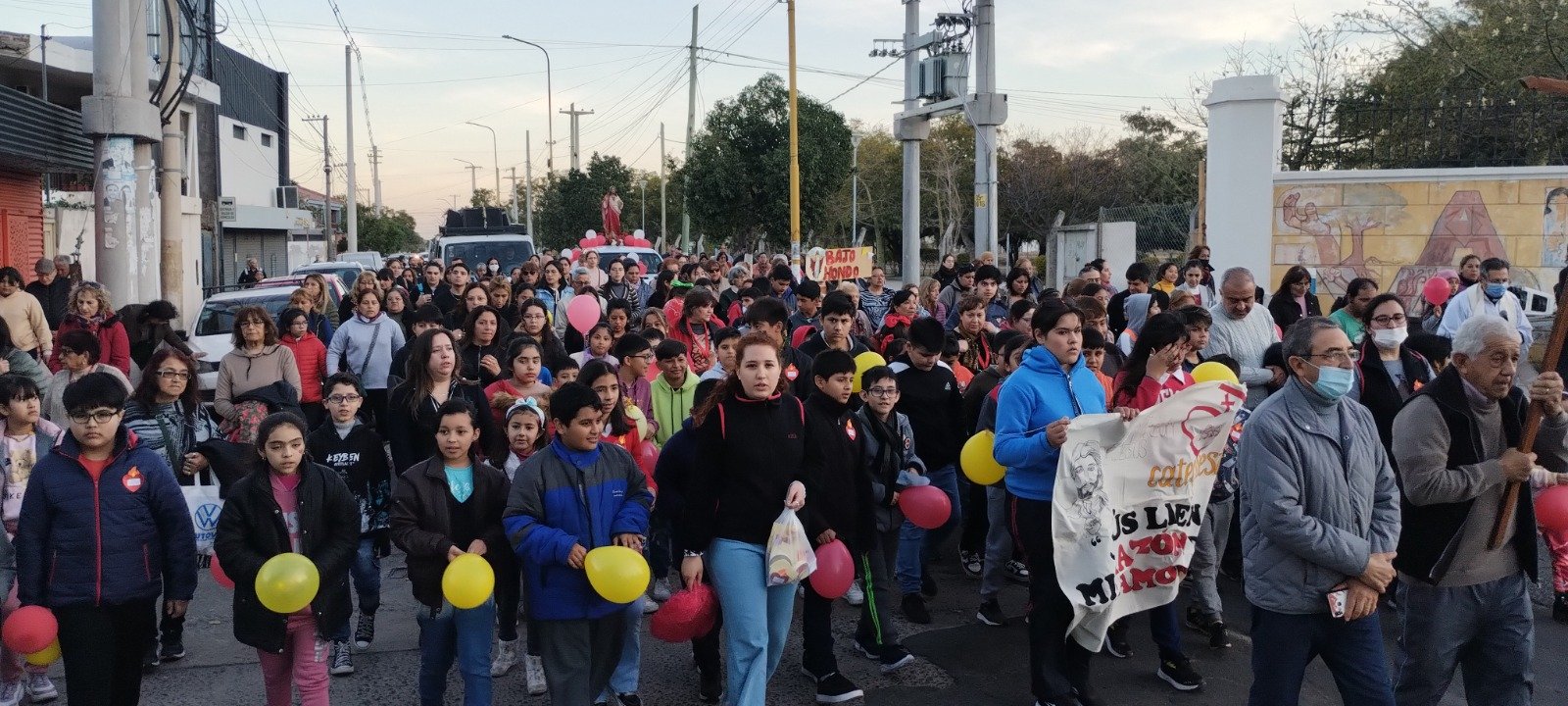Durante la tarde del sábado 1 de julio, los fieles y devotos de las comunidades que integran la jurisdicción parroquial, junto con su párroco, el padre Salvador Acevedo, participaron de la procesión, que partió de la capilla San Cayetano. Desde este punto se encaminaron por calle 1 de Mayo, rezando, cantando, mientras los chicos de la catequesis agitaban globos rojos, amarillos y blancos, poniéndole color y alegría a la jornada sabatina.