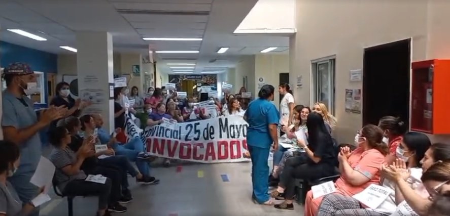 Tal cual pasa en otros nosocomios, continuan los paros y protestas en distintos puntos de la provincia, con los reclamos de aumento slarial, descuento de haberes entre otras cosas.