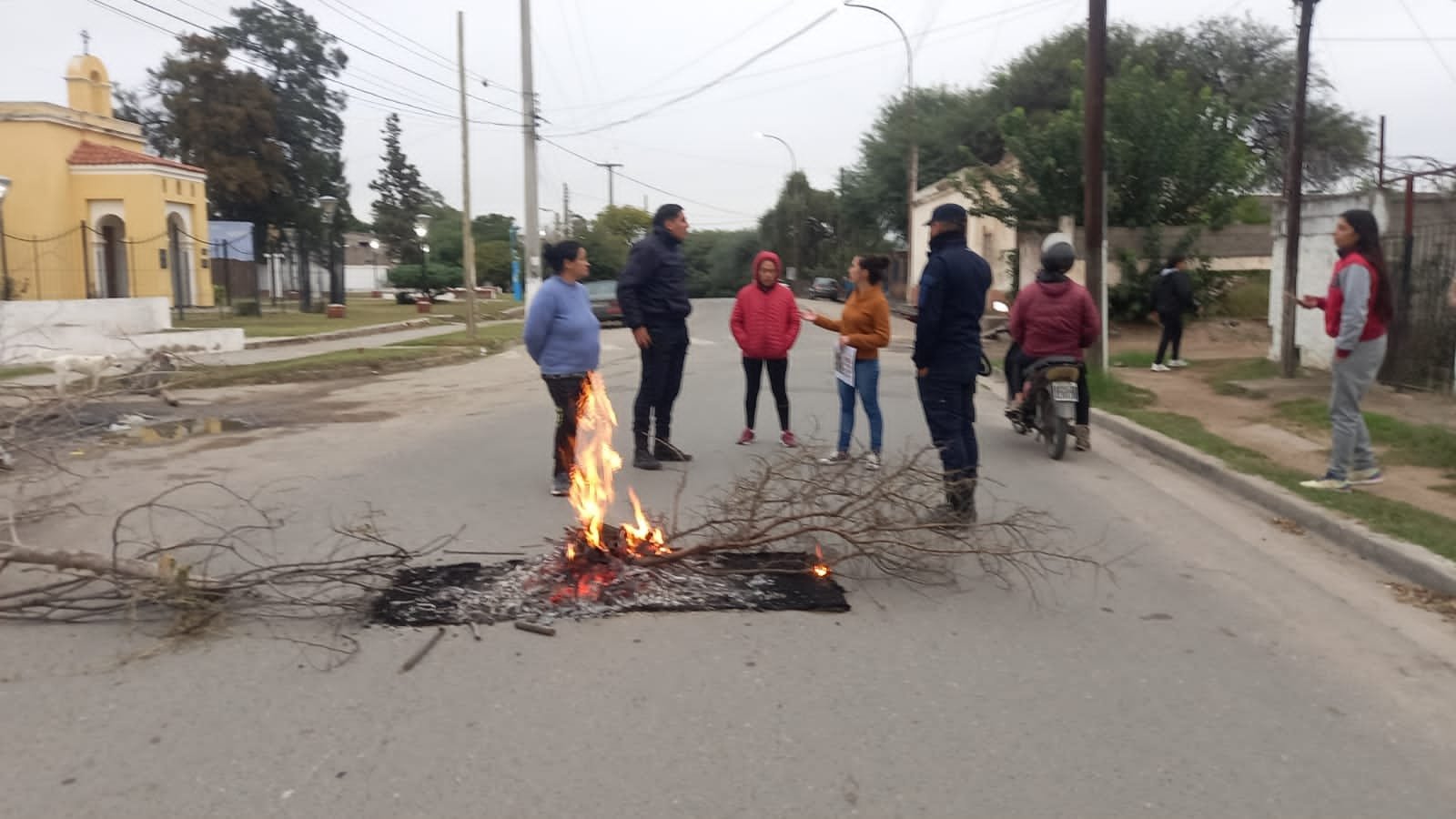 En la mañana de este lunes, vecinos cortan calle frente a La Ermita de la Virgen del Valle, en San Isidro, Departamento Valle Viejo.
