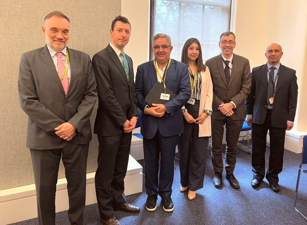 En este marco, el gobernador Jalil y el Embajador mantuvieron una reunión en las oficinas de UKEF, con Adam Harris (a cargo de la Dirección que maneja los proyectos civiles, de infraestructura y de energía), Tim Palmer (a cargo del departamento que maneja energías renovables y de transición) y Rajaram Jamadagni (manager en proyectos de baterías, energía nuclear y solar).