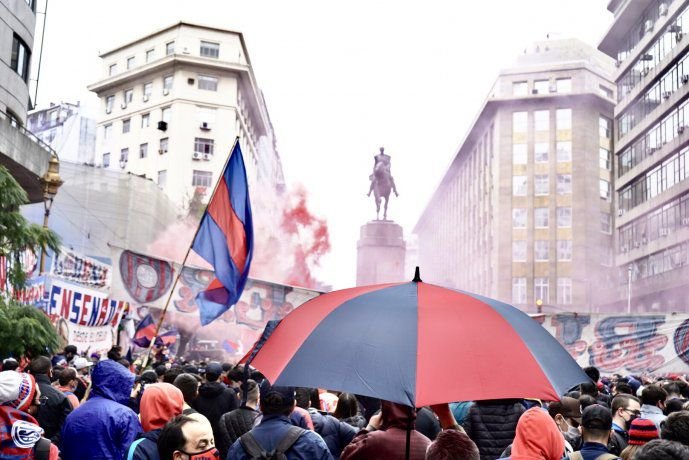 Por la mañana, centenares de simpatizantes del “azulgrana” habían llegado a las inmediaciones del edificio de la calle Perú al 100 con banderas que mostraban consignas como “Justicia por San Lorenzo”, “No hay pandemia que nos pueda separar” y “Sí a la ley de Rezonificación”.