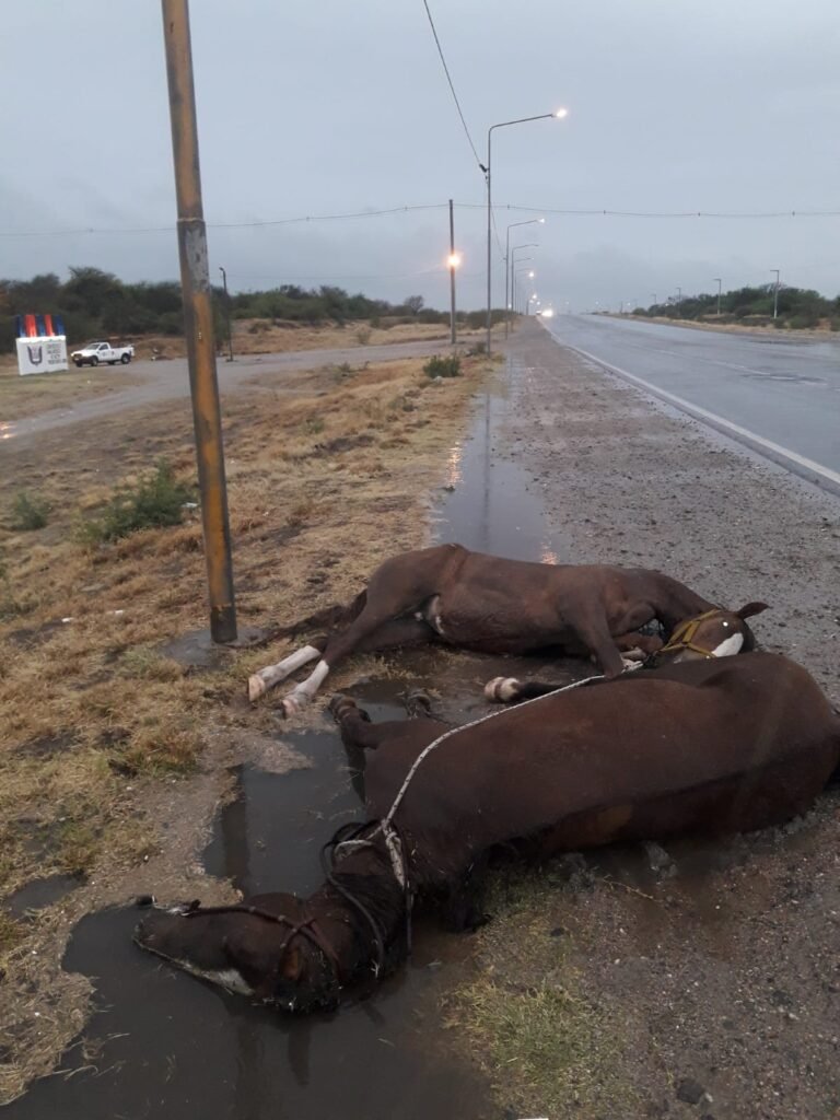 Sucedió en la tarde de hoy, mientras llovía, un trabajador que venía a caballo y traía uno más de tiro, sufrió una fuerte descarga eléctrica, electrocutó a los dos equinos y el hombre se salvó de milagros.