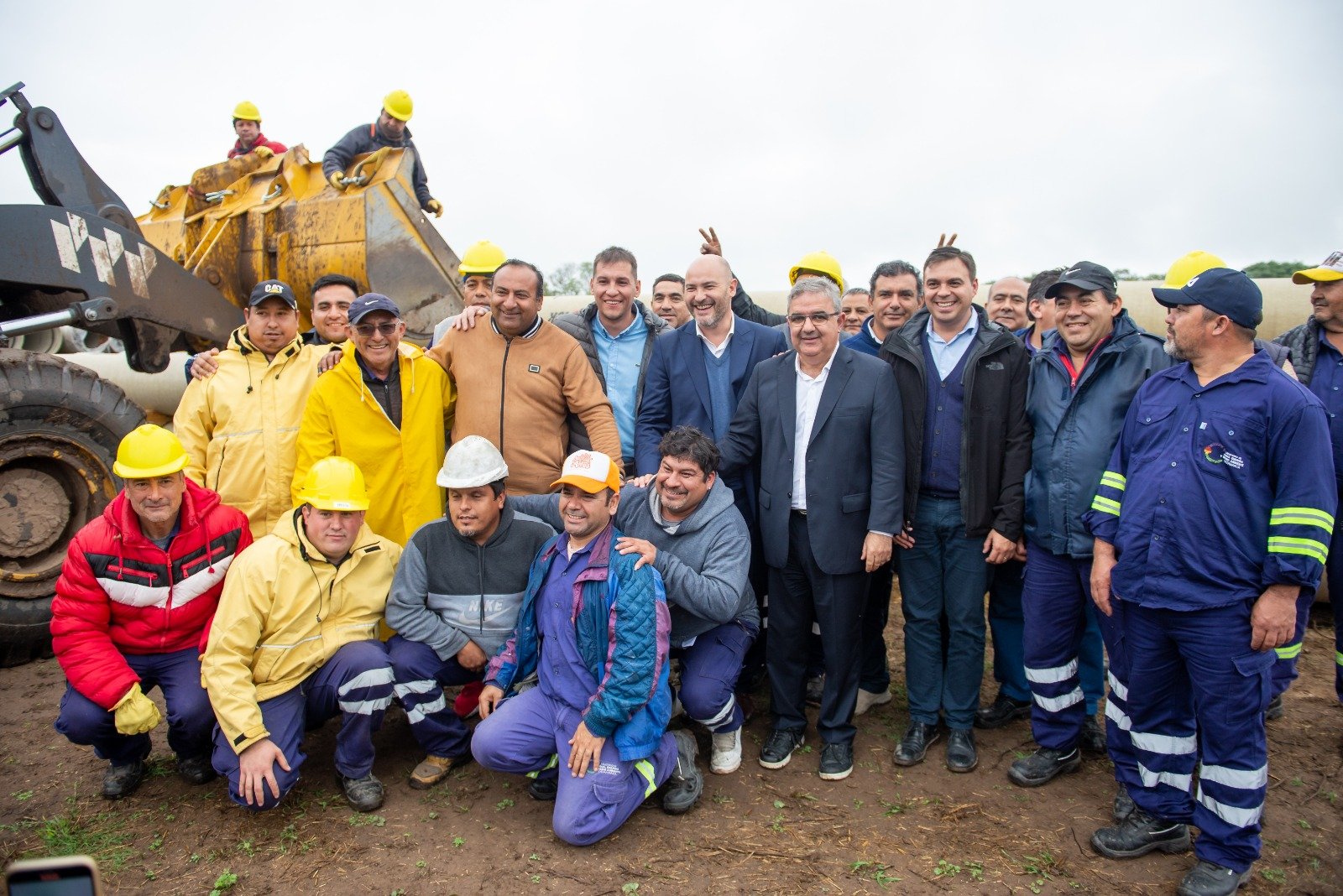 En el marco de su visita al departamento Santa Rosa, el gobernador Raúl Jalil y el equipo de gobierno visitaron el lugar donde se realizó la descarga de cañería que se empleará en la recuperación del canal.