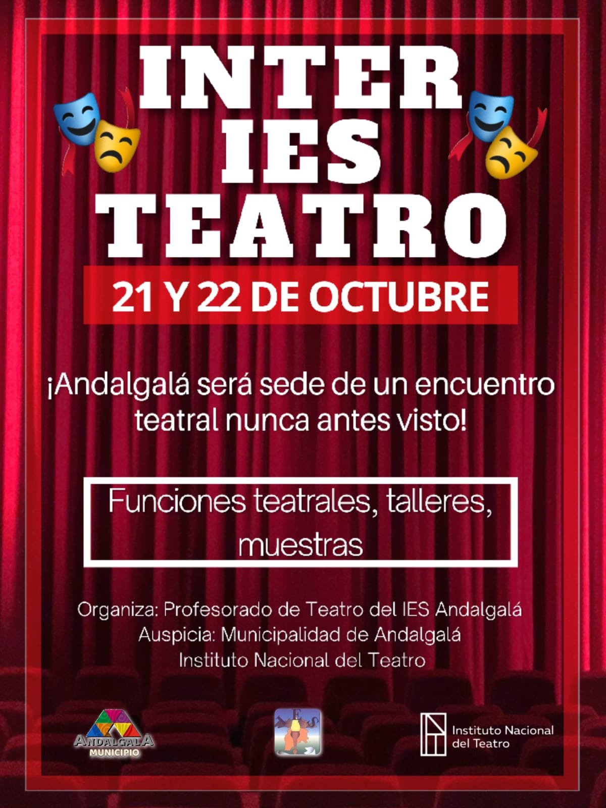 El viernes 21y el sábado 22 de Octubre Andalgalá será la sede del 1er Encuentro Inter IES de los Profesorados de Teatro de Catamarca.