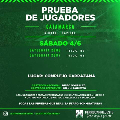 Todas las pruebas que realiza el Club Ferro son gratuitas. Los esperamos!