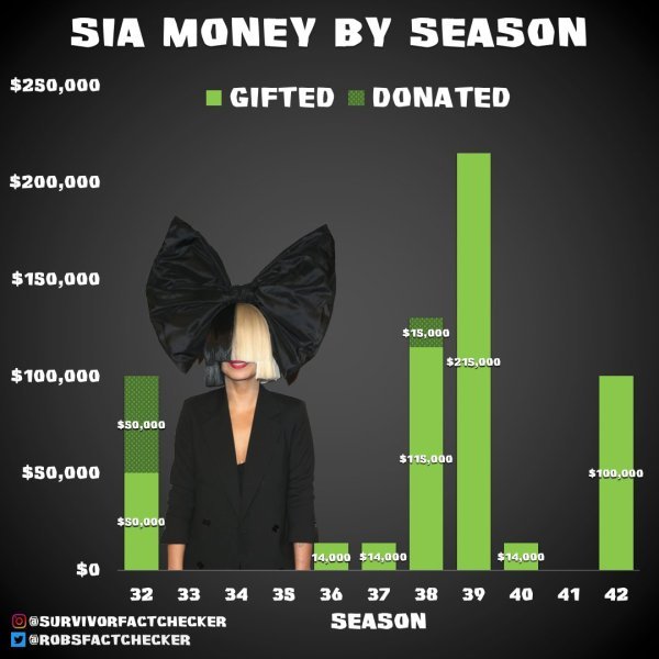La semana pasada, después de la emisión del final de la temporada, la cantante de Cheap Thrills anunció que continuaría con su tradición de entregar el Premio Sia. Desde la 33ª temporada del programa la cantante otorga este premio extra de dinero a sus concursantes favoritos.