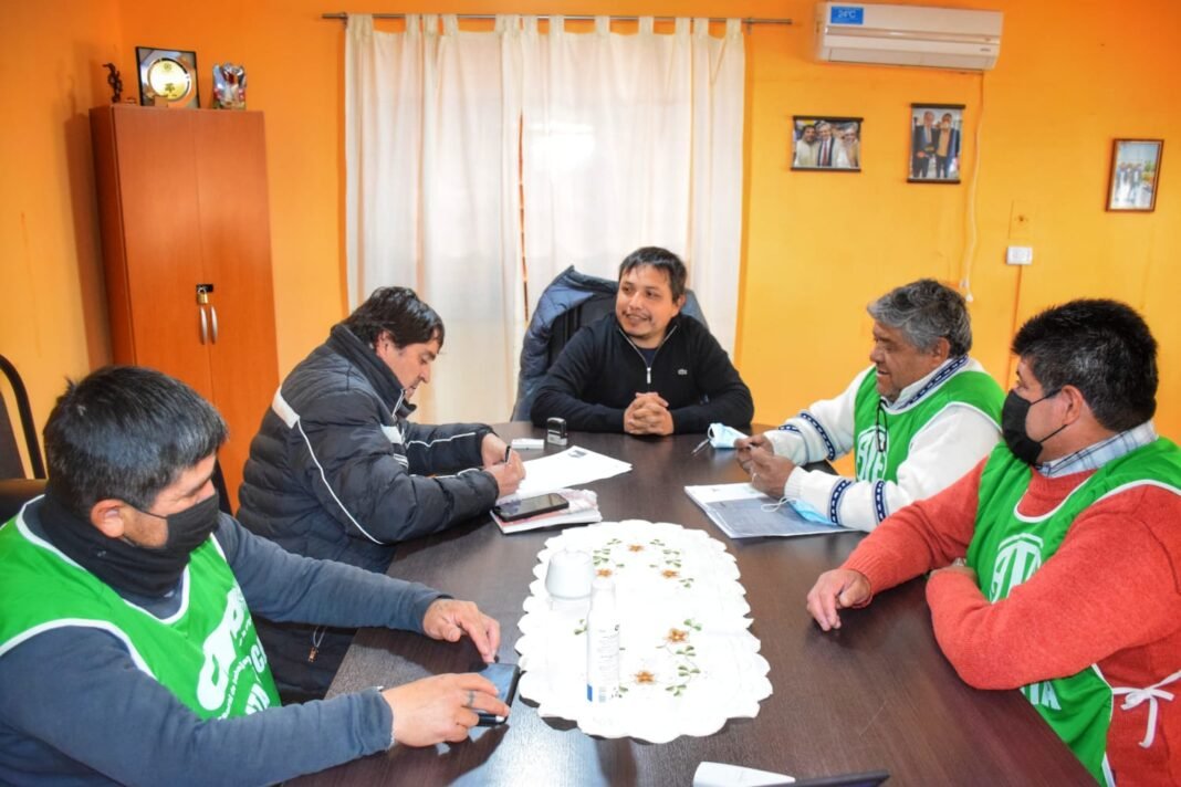 Esta mañana, el intendente Sebastian Noblega se reunió con los representantes del Gremio de UPCN; Enzo Olmos y Eliana, y del gremio ATE; Sergio Fernández, Mariano Cirilo Marcial, Julio Chanampa y Abel Omos delegados del gremio de ATE.