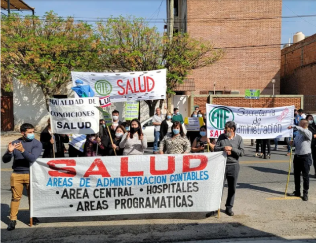 Al malestar de los trabajadores de la salud de distintos sectores (enfermeros, médicos y profesionales de otros rubros) ayer se sumó una marcha del personal administrativo contable de los hospitales y del Ministerio de Salud, quienes también reclaman una equiparación salarial a través del pago de un adicional, que es el que cobran todos los administrativos contables de otros estamentos de la administración pública. La marcha fue al Ministerio de Trabajo, donde la titular, Verónica Soria, prometió recibirlos la próxima semana.