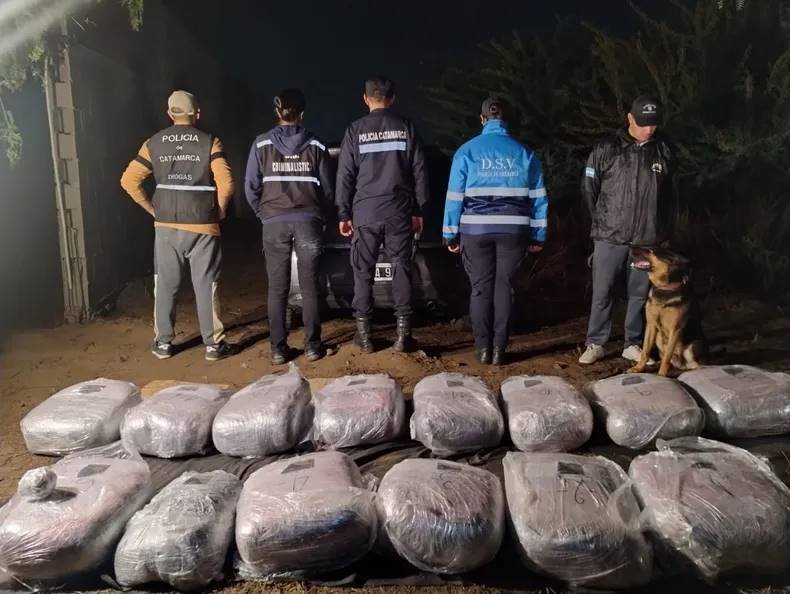 La investigación se había iniciado hace varios meses. Todo comenzó cuando efectivos de Drogas Peligrosas y de las Divisiones Inteligencia y Canes Antinarcóticos realizaban un operativo de control vehicular en la ruta nacional 60, a la altura del ingreso a la quebrada de La Cébila, en el departamento Capayán y registraron un auto Fiat Palio blanco en el que circulaban dos hombres de 28 y 49 años, oriundos del departamento Pomán. Al requisar el vehículo los policías secuestraron 38 paquetes o panes de marihuana compactada y una bolsa de plástico blanca con cogollos (flores de marihuana). Al realizarse la prueba de campo de rigor, se confirmó que se trataban de 31,020 kilos de marihuana.