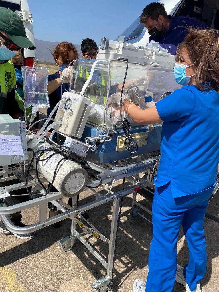 El pequeño fue trasladado de urgencia desde el Servicio de Neonatología de la Maternidad Provincial “25 de Mayo”, donde permanecía internado con diagnóstico de cardiopatía congénita (hipoplasia ventricular izquierda con ductus arterioso persistente), hacia el Hospital “Ricardo Gutiérrez” de Buenos Aires para recibir un tratamiento quirúrgico oportuno y de mayor complejidad.