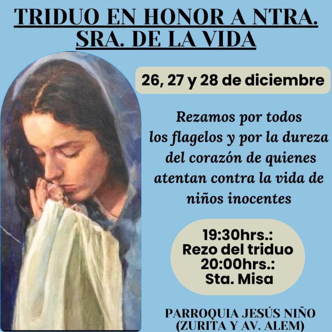 El lunes 26 de diciembre, se dio inicio al triduo en honor de Nuestra Señora de la Vida, en la parroquia Jesús Niño, que culminará el miércoles 28.