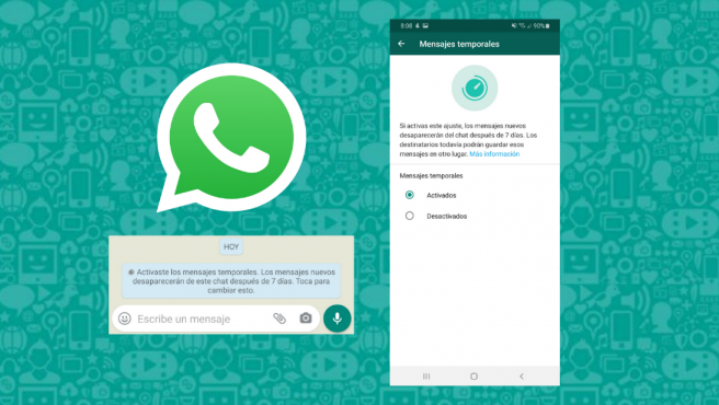 Los mensajes temporales permiten a los usuarios que así lo deseasen interactuar con otros usuarios sin dejar rastro. Desde hace poco, los mensajes temporales también se están implementado en la aplicación de mensajería instantánea WhatsApp. La función de WhatsApp no es igual que la de Instagram, puesto que los mensajes enviados desaparecen tras 7 días y ambos usuarios del chat deben consentirlo.