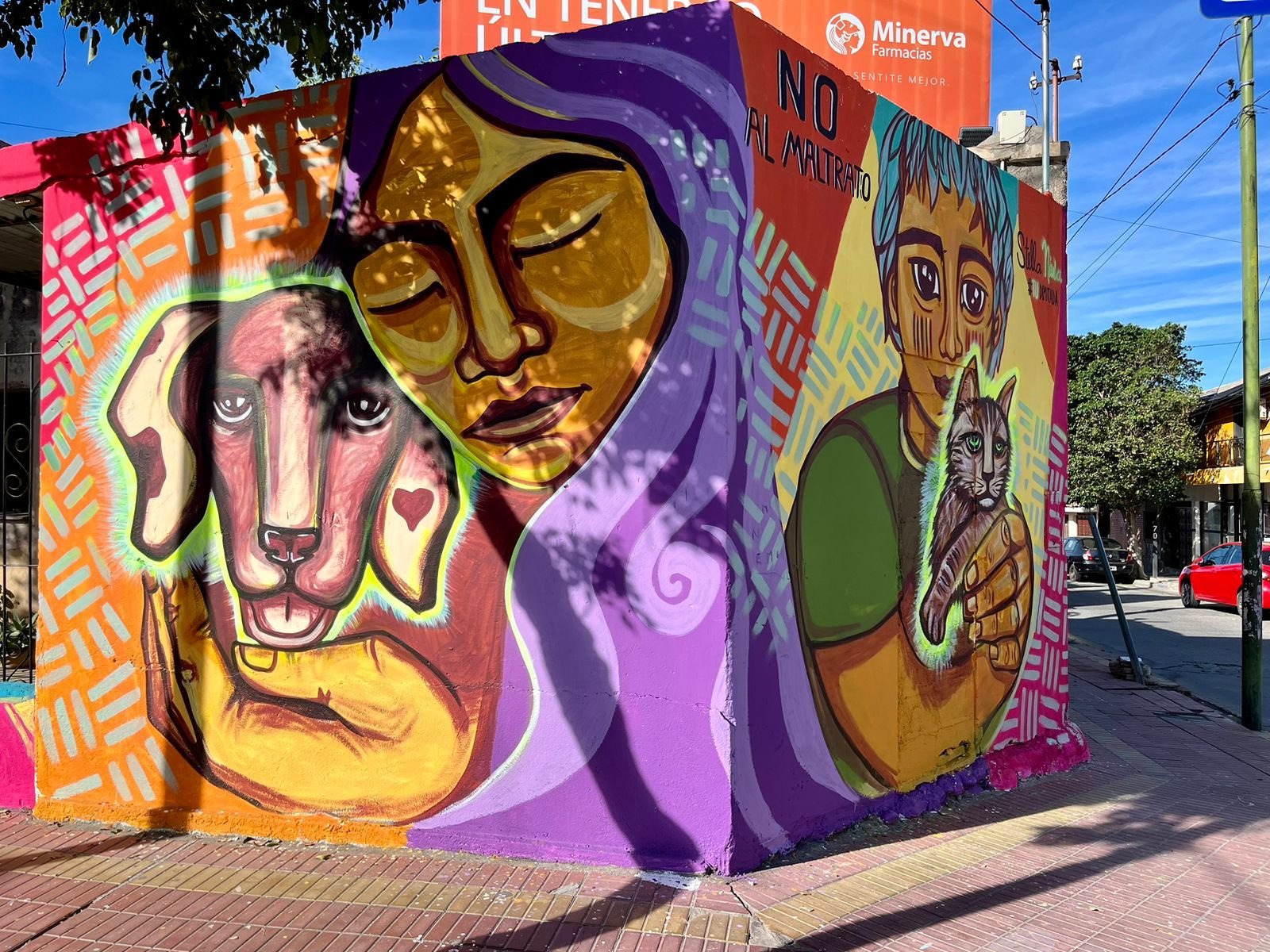 Fue realizado por el Colectivo de Mujeres Muralista “Ninakerus “en la esquina de la avenida Mariano Moreno y avenida Gobernador Francisco Galíndez con el objetivo de seguir avanzando con el proyecto de ley “Protección animal y bienestar animal “que presentó la diputada Stella Nieva el 27 de abril del 2022.