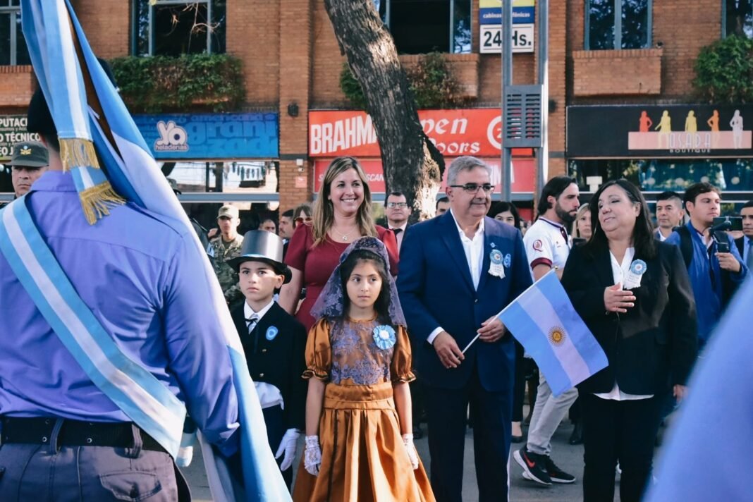 El gobernador Raúl Jalil, junto a la intendenta de Valle Viejo, Susana Zenteno, encabezaron el acto oficial por el 213° Aniversario de la Revolución de mayo de 1810.