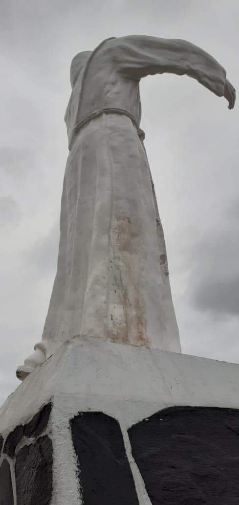 Según se conoció, los vándalos mancharon, aparentemente, con vino el monumento que está emplazado en las lomadas, en la localidad de  Piedra Blanca.