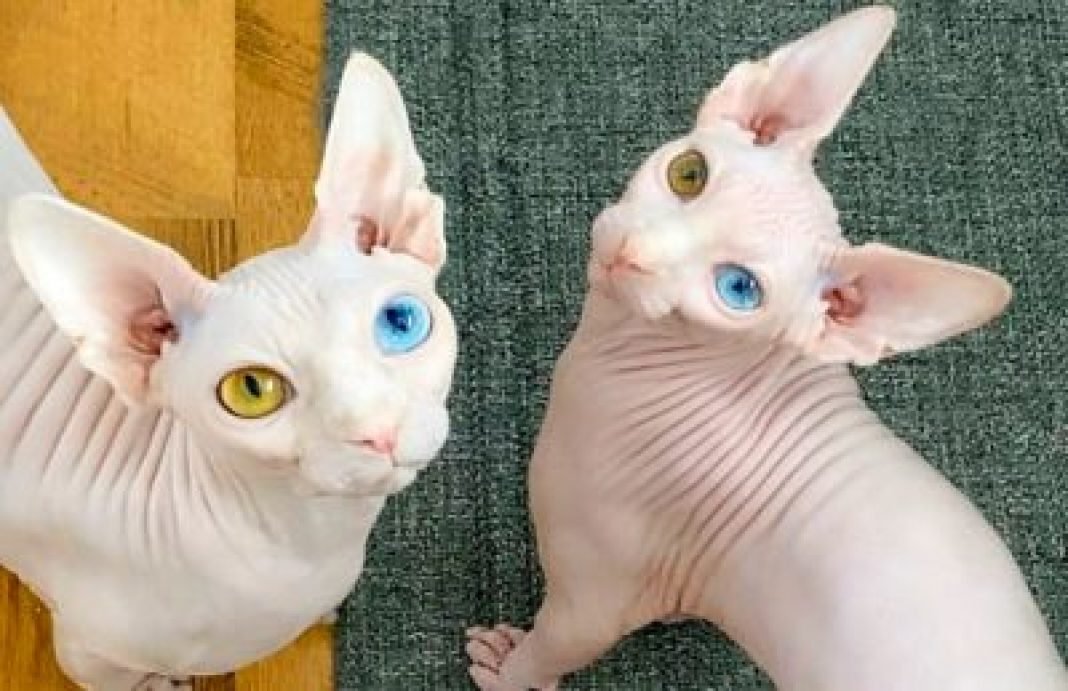 Un par de gatos de raza Sphynx con ojos de diferentes color se han convertido en sensación en las redes sociales y muchos usuarios los comparan con David Bowie, quien era reconocido por diferentes colores en sus iris.